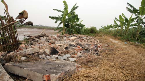 Ngôi nhà của ông Vươn sau khi bị phá sập - Ảnh: H.H. - N.H.K.