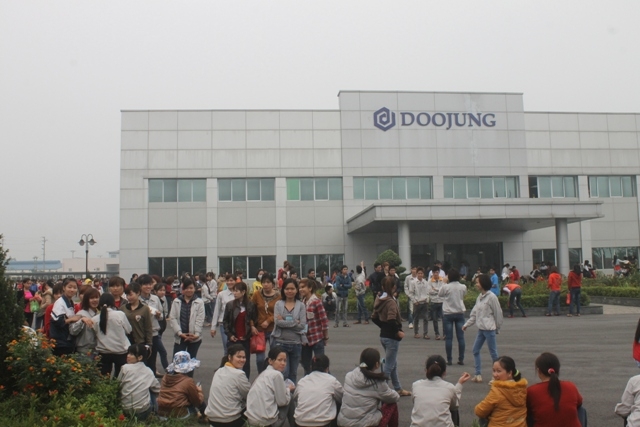 Sáng ngày 8/4, ngay từ sáng sớm, các công nhân đang làm việc tại Công ty Doojung Việt Nam (ở Khu công nghiệp Phú Nghĩa, huyện Chương Mỹ, Hà Nội) đã tụ tập ngay trước cổng chính của công ty này để phản đối những sách bất hợp lý mà công ty này đề ra.