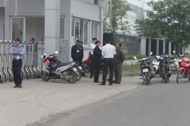 Ngay sau đó, rất nhiều công an xã và cán bộ Phòng LĐ-TB-XH huyện Chương Mỹ đến làm việc đều bị bảo vệ của công ty "mời" đứng ngoài cổng.